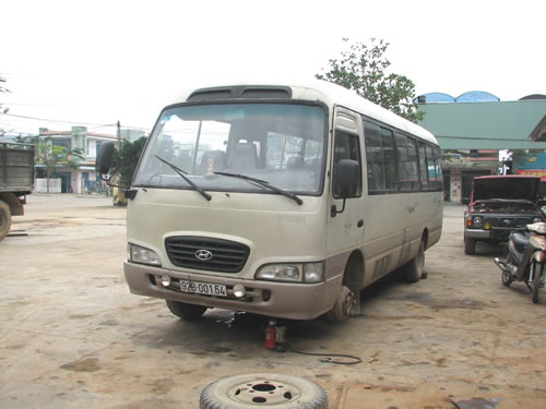 | Sản xuất đình đốn, nợ nần chồng chất đến nỗi chiếc ô-tô chở công nhân Cty Vàng Phước Sơn bị hư hỏng không có tiền sửa. Ảnh: H.T |