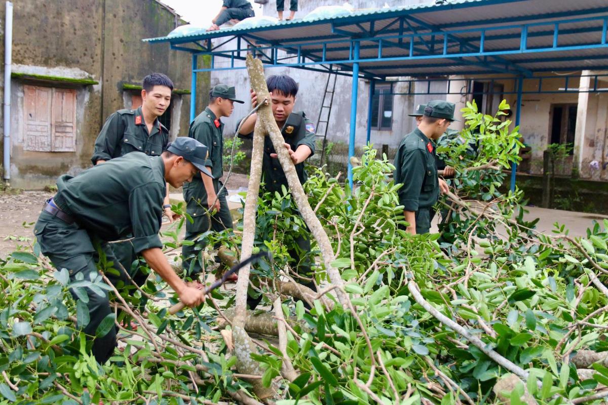 Các cán bộ, chiến sĩ đã cùng người dân đổ nước vào bao ni-lông, tiến hành gia cố mái tôn, chằng chống nhà cửa, trụ sở UBND, trường học trên các địa bàn; đồng thời, phát dọn cây xanh, cành nhánh cây có nguy cơ gãy đổ nhằm hạn chế thiệt hại khi bão đổ bộ.