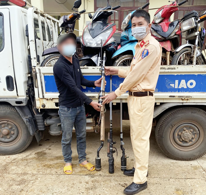 Cũng trong thời gian này, trong quá trình làm nhiệm vụ, Tổ công tác của Đội Cảnh sát giao thông, trật tự Công an huyện Đắk Glong đã tuyên truyền, vận động 3 người dân trên địa bàn xã Quảng Sơn, huyện Đắk Glong giao nộp 5 súng tự chế.