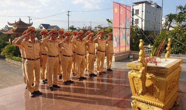 CBCS Phòng CSGT đặt vòng hoa và dâng hương tưởng niệm, tri ân các Anh hùng liệt sỹ tại Nghĩa trang liệt sỹ P.Hòa Xuân. |