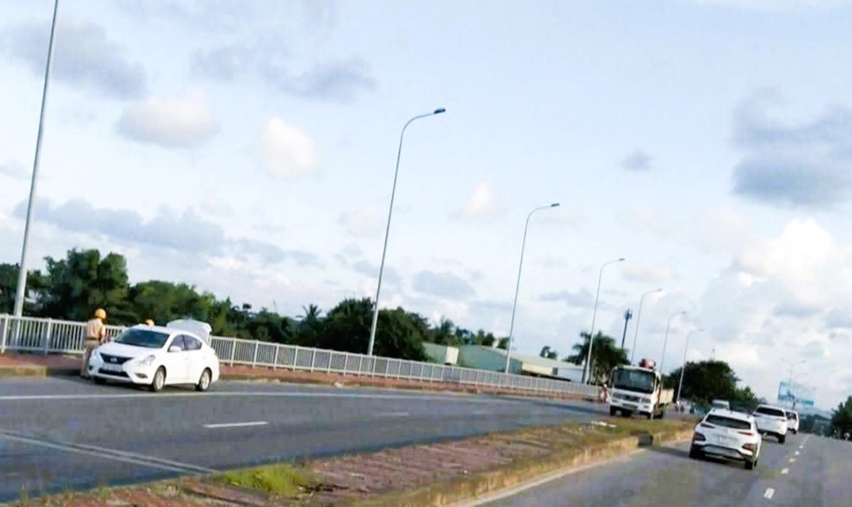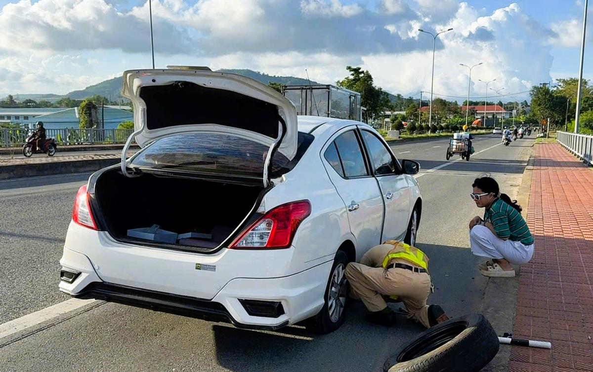 Đồng thời, cán bộ CSGT đã trực tiếp hỗ trợ tài xế thay lốp, giúp phương tiện sớm rời khỏi vị trí nguy hiểm, hạn chế ùn tắc và rủi ro tai nạn.