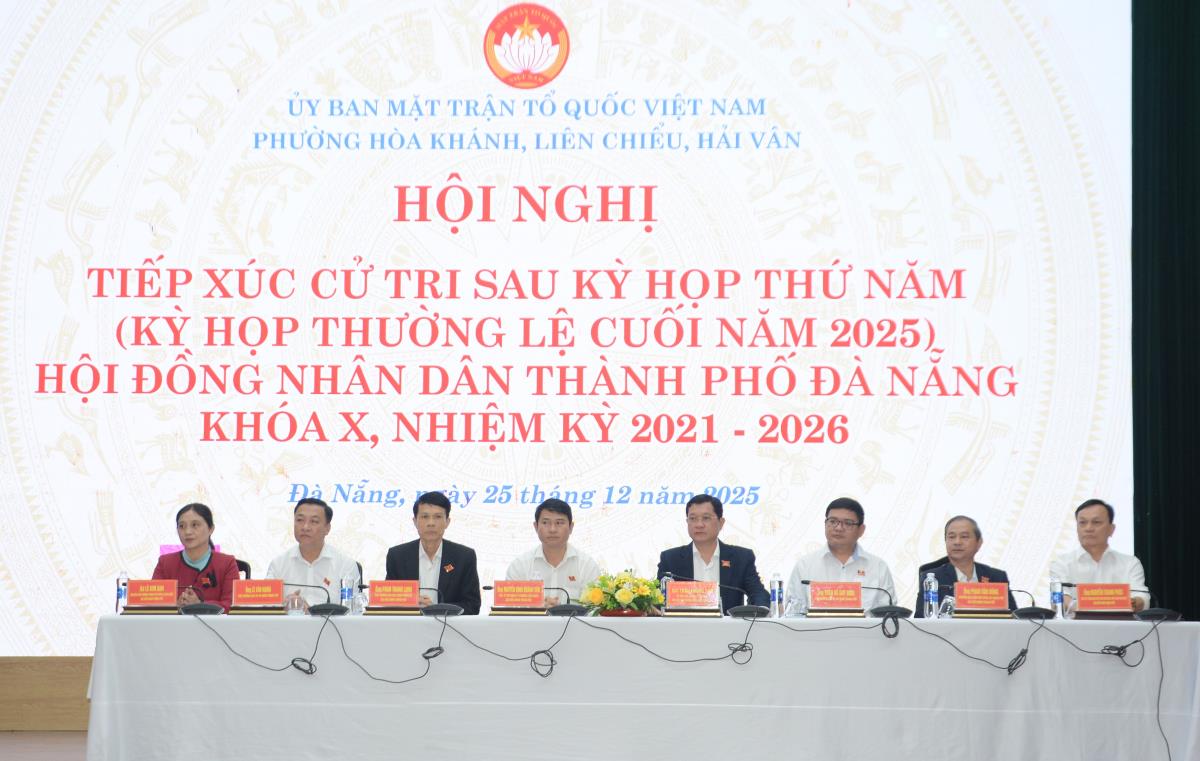 Ngày 25-12, Tổ đại biểu số 6 HĐND thành phố (8 đại biểu) do Phó chủ tịch Thường trực HĐND thành phố Trần Phước Sơn làm tổ trưởng đã có buổi tiếp xúc cử tri các phường Hòa Khánh, Liên Chiểu và Hải Vân, nhằm thông báo kết quả kỳ họp thứ 5 (kỳ họp thường lệ cuối năm 2025) HĐND thành phố Khóa X, nhiệm kỳ 2021-2026.