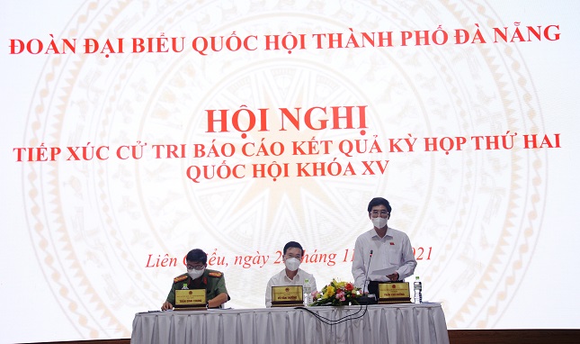 Sau khi lắng nghe ý kiến cử tri quan tâm, ĐBQH quận Liên Chiểu và Hòa Vang cũng đã có ý kiến giải trình. Theo Đại biểu Trần Đình Chung, liên quan đến Luật An ninh mạng, trong đó nhiều trường hợp đã có lời lẽ phản cảm trên mạng xã hội và một số xuyên tạc, nhất là việc bị các thế lực thù địch lôi kéo, đưa những tin bài không chính xác, ảnh hưởng đến cá nhân, tổ chức thời gian qua các cơ quan chức năng, ngành thông tin truyền thông đã có xử lý kịp thời. Bộ CA cũng đã chỉ đạo các địa phương làm mạnh, làm nghiêm, tiến hành khởi tố 23 bị can với hàng chục đối tượng và yêu cầu các trang mạng gỡ bỏ. Tại Đà Nẵng cũng phát hiện, xử phạt hàng chục trường hợp và nhiều trường hợp khác đang theo dõi, từ đó có xử lý, răn đe nghiêm khắc. Về việc cấp CCCD trễ, Đại biểu Trần Đình Chung cho hay, cùng với cả nước, Đà Nẵng phần lớn đã hoàn thành các thủ tục cấp CCCD cho bà con và chuyển toàn bộ hồ sơ ra Bộ, song một phần do dịch bệnh và do khó khăn trong khâu nhập thiết bị, như chip gắn trên căn cước và một phần công dân bị sai lệch thông tin phải điều chỉnh nên CCCD của cử tri đến nay vẫn chưa nhận được.