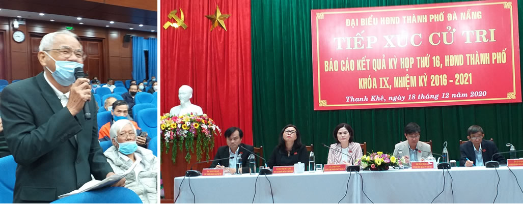 Tại buổi tiếp xúc, nhiều cử tri đặc biệt quan tâm đến các vấn đề liên quan đến sự phát triển của thành phố cũng như vấn đề an sinh xã hội. Hầu hết ý kiến đều cho rằng, năm 2020, trong bối cảnh đối diện với nhiều khó khăn, thách thức do dịch bệnh Covid-19 gây ra, thành phố đã có nhiều giải pháp quyết liệt, kịp thời không những ngăn chặn tốt nguy cơ lây lan của dịch bệnh mà còn làm tốt nhiệm vụ “mục tiêu kép”, góp phần cho việc duy trì và phát triển kinh tế, đảm bảo an sinh xã hội. Cử tri Nguyễn Hùng (P. Hòa Khê) đề nghị, chính quyền các cấp sớm đầu tư cửa đóng mở hệ thống thoát nước vào hồ điều tiết Xuân Hòa để giảm nguy cơ ngập lụt cục bộ trong khu dân cư; không xây dựng khu tập trung rác quy mô lớn trên đường Nguyễn Đức Trung dễ dẫn đến nguy cơ gây ô nhiễm môi trường vì đây là nơi gần trường học, bệnh viện và khu dân cư. Cử tri Nguyễn Hùng cũng đề nghị, ngành Công an cần tăng cường hơn nữa công tác quản lý địa bàn, đặc biệt là tăng cường công tác kiểm tra các cơ sở lưu trú, nơi cho thuê trọ để sớm phát hiện những trường hợp là người nước ngoài đến tạm trú nhằm mục đích đảm bảo tốt ANTT và phòng, chống dịch bệnh. Đối với vấn đề xây dựng chính quyền đô thị ở Đà Nẵng, cử tri Nguyễn Hùng cho rằng, cùng với sự nỗ lực chung của cả hệ thống chính trị thì việc “Dám nghĩ, dám nói, dám làm và dám chịu trách nhiệm” của lãnh đạo là điều tiên quyết và cần giảm mạnh các thủ tục hành chính đừng để xảy ra tình trạng “Trên mở, sở, ngành thì đóng”.
