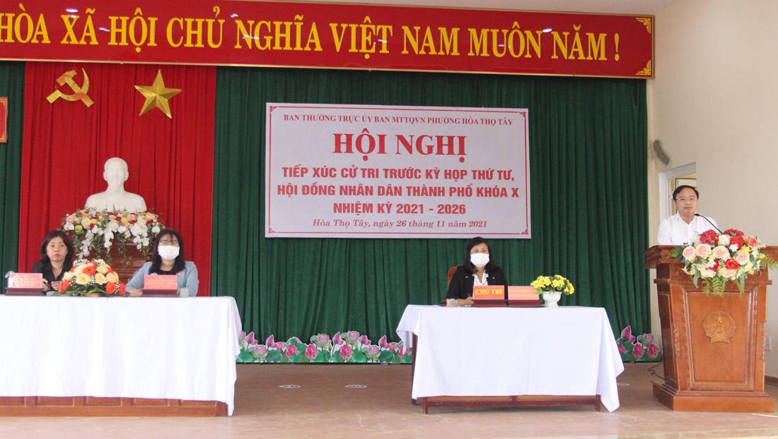 Ngày 26-11, Tổ đại biểu Hội đồng Nhân dân (HĐND) TP Đà Nẵng gồm các đại biểu Phan Thị Thúy Linh, Đoàn Xuân Hiếu, Lê Thị Như Hồng có cuộc tiếp xúc cử tri (TXCT) trước Kỳ họp thứ tư, HĐND TP Đà Nẵng khóa X, nhiệm kỳ 2021-2026 tại phường Hòa Thọ Tây và Hòa An (Q. Cẩm Lệ).