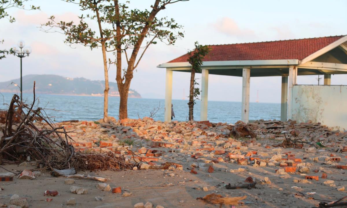Bão chồng bão liên tiếp đổ bộ vào Nghệ An, Cửa Lò là địa phương chịu tác động đầu tiên nên hậu quả để lại khá nặng nề. Đặc biệt, khu vực Quảng trường Bình Minh và một số công trình công cộng sát bờ biển đã bị sóng đánh tan hoang, giờ chỉ còn lại đống đổ nát.