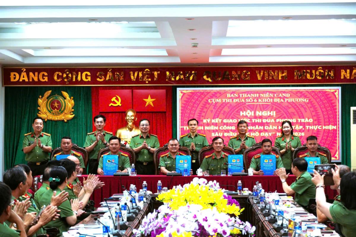 Cũng tại Hội nghị, Ban Thanh niên và Ban Phụ nữ Cụm thi đua số 6 – Bộ Công an đã ký kết giao ước thi đua: “Thanh niên Công an nhân dân học tập, thực hiện Sáu điều Bác Hồ dạy” năm 2026; “Phụ nữ Công an bản lĩnh, nhân văn, sáng tạo, trung hậu, đảm đang – vì an ninh Tổ quốc, vì hạnh phúc Nhân dân” giai đoạn 2025–2030. Việc ký kết nhằm tạo khí thế thi đua sôi nổi, phát huy vai trò xung kích, sáng tạo của đoàn viên thanh niên và hội viên phụ nữ trong thực hiện nhiệm vụ bảo đảm an ninh trật tự tại địa phương./.