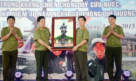 Đại diện CA tỉnh Thanh Hoá và TP Hải Phòng anh em tặng quà lưu niệm cho CA tỉnh Quảng Nam và CATP Đà Nẵng. |