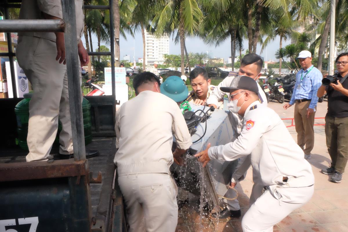 UBND phường Phước Mỹ đã hai lần vận động, đối thoại với các hộ vào các ngày 17/12, 19/12, 25/12/2024 và 03/01/2025, kết quả chỉ 3/10 trường hợp chấp hành. UBND quận đã ban hành quyết định xử phạt và cưỡng chế đối với 7 trường hợp còn lại. Ban cưỡng chế của quận đã xây dựng phương án chi tiết, thông báo thời gian và tiến hành cưỡng chế vào lúc 7h30 sáng 7/5/2025. Tại thời điểm cưỡng chế, các hộ kinh doanh vắng mặt, tài sản đã được tự di dời trước đó, nên việc cưỡng chế vắng mặt được thực hiện theo đúng quy định.