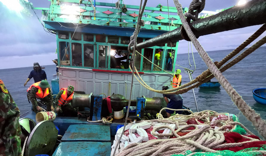 Lúc 4 giờ 20 ngày 11-12, tàu BĐ 94757 TS công suất 550 CV) với 12 lao động hành nghề lưới vây do ông Nguyễn Văn Bi (1981, trú xã Mỹ Đức, H. Phù Mỹ, tỉnh Bình Định) làm thuyền trưởng đang hành trình đánh bắt thì va vào Hòn Mồ (Cù Lao Chàm, TP Hội An, Quảng Nam) gây vỡ be mũi tàu, nước tràn vào, có nguy cơ bị chìm. Nhận được tin báo, Đồn Biên phòng Cù lao Chàm (BĐBP Quảng Nam) điều động phương tiện, lực lượng tiếp cận tàu bị nạn, bơm nước và hướng dẫn tàu chạy vào khu vực an toàn.