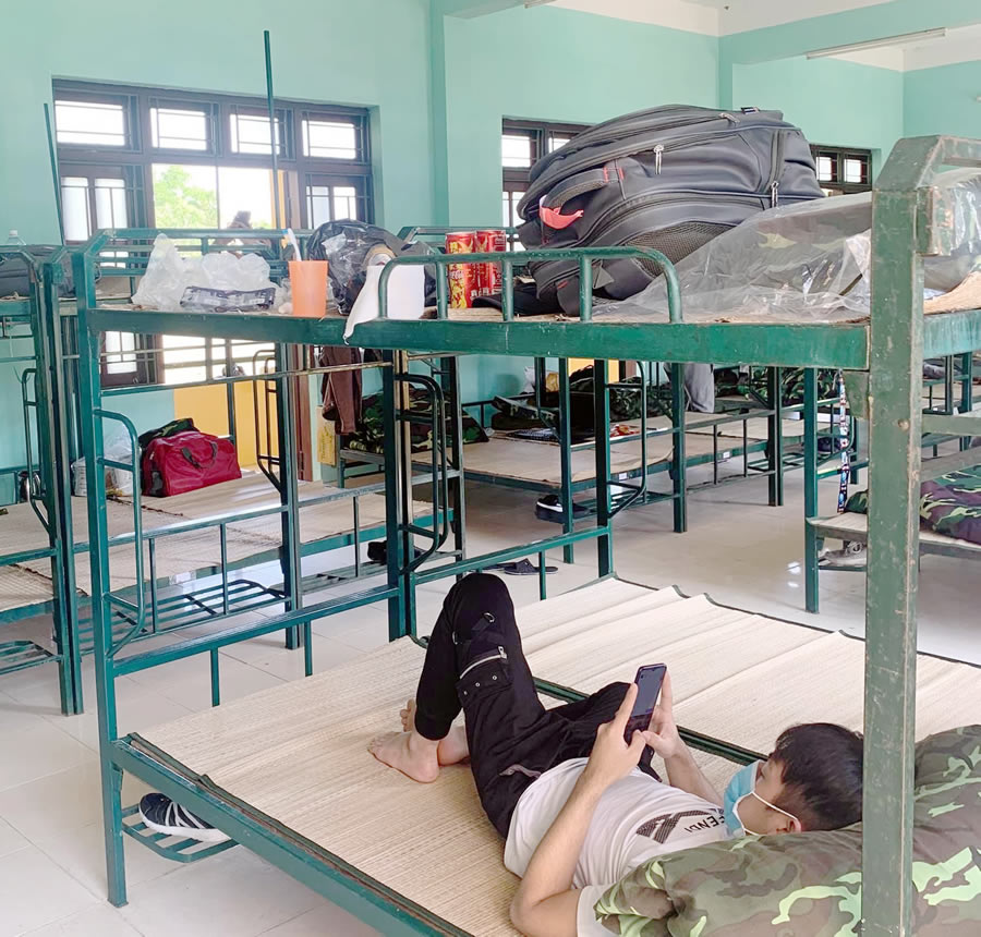 Bên trong khu vực cách ly, theo dõi tại Trung tâm huấn luyện dự bị Đồng Nghệ. |