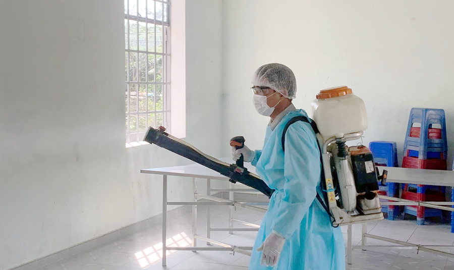 Hằng ngày, các khu vực cách ly tập trong đều được phun thuốc khử trùng. |