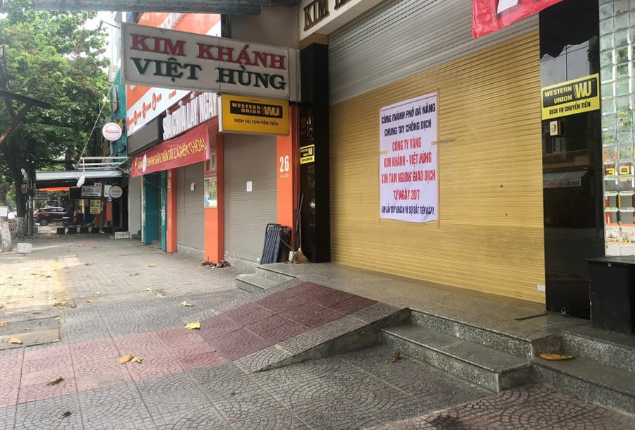 Dãy phố đóng cửa im lìm, người dân ngừng kinh doanh và chủ động cách ly tại nhà. |