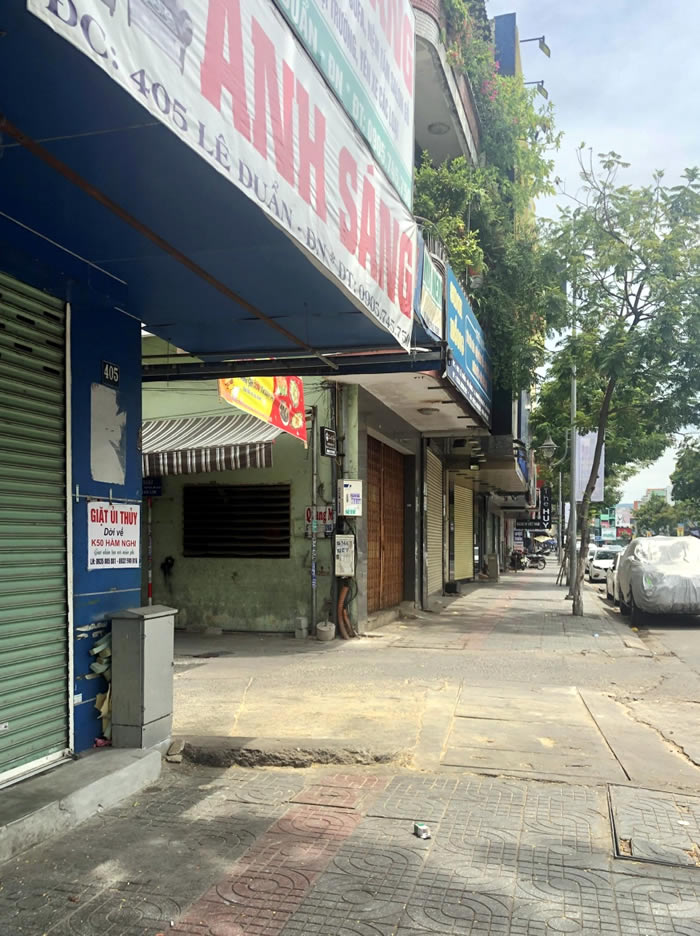 Dãy cửa hàng trên đường Âu Cơ đồng loạt đóng cửa, chấp hành tốt việc tạm ngừng kinh doanh. |