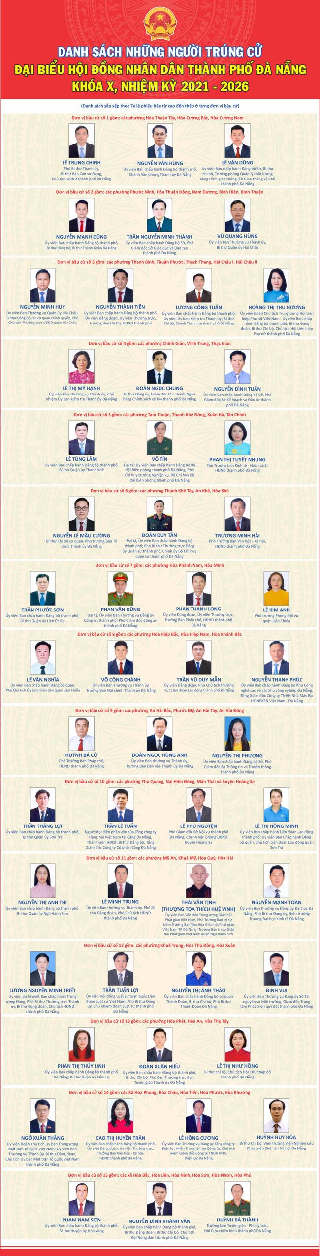 Đơn vị bầu cử số 5 Gồm: Phường Tam Thuận, phường Thanh Khê Đông, phường Xuân Hà, phường Tân Chính |