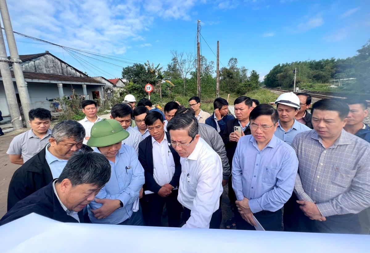 Phó Chủ tịch UBND thành phố Trần Nam Hưng (thứ 3, bên phải sang) kiểm tra thực tế tại cầu vượt đường sắt.