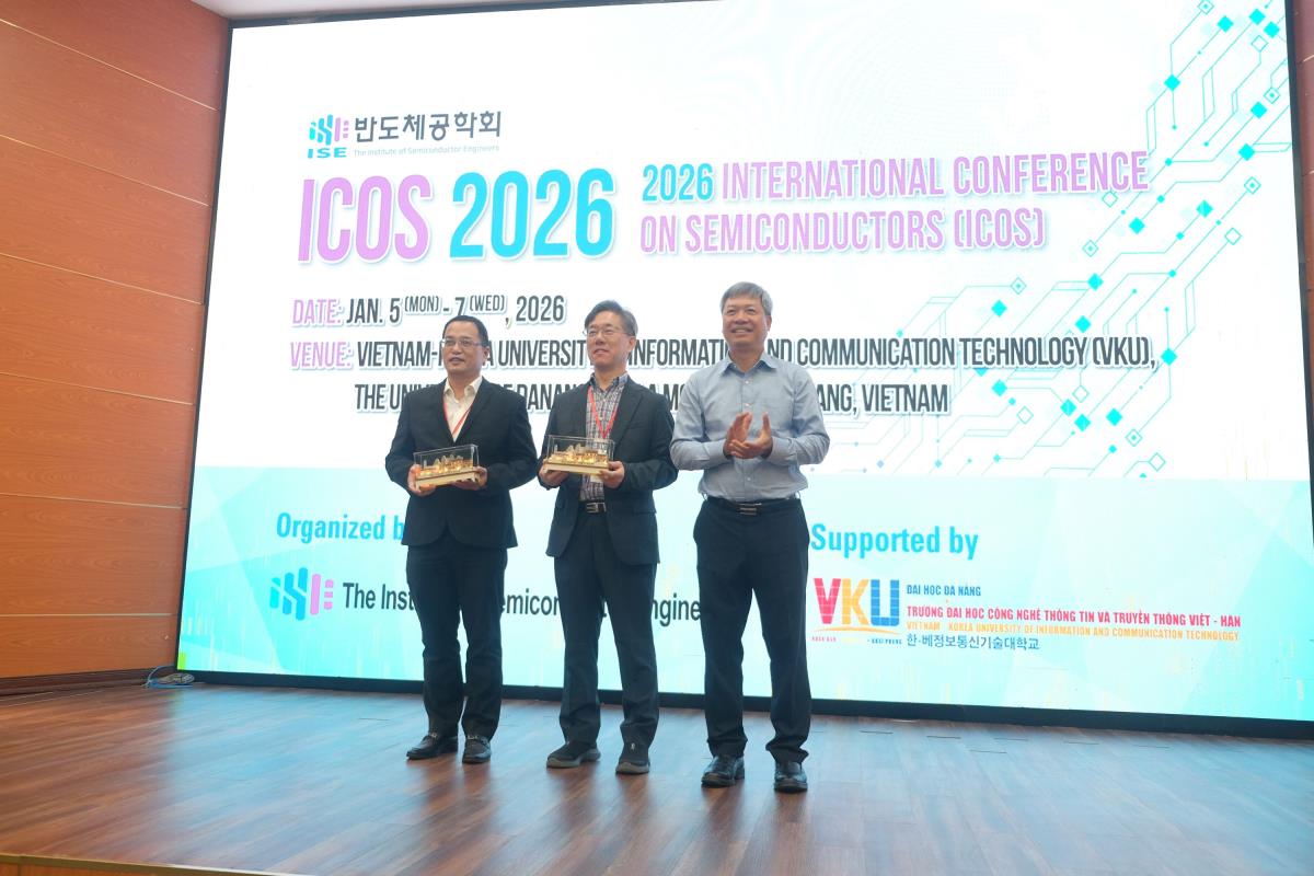 Sáng 6-1, Trường Đại học Công nghệ Thông tin và Truyền thông Việt – Hàn (VKU), Đại học Đà Nẵng (ĐHĐN), phối hợp cùng Hiệp hội Kỹ sư Bán dẫn Hàn Quốc (ISE) tổ chức Hội thảo Quốc tế về Bán dẫn năm 2026 (ICOS 2026). Đây là hội thảo khoa học quốc tế chuyên sâu về lĩnh vực vi mạch bán dẫn lần đầu tiên được tổ chức tại khu vực miền Trung và Việt Nam.