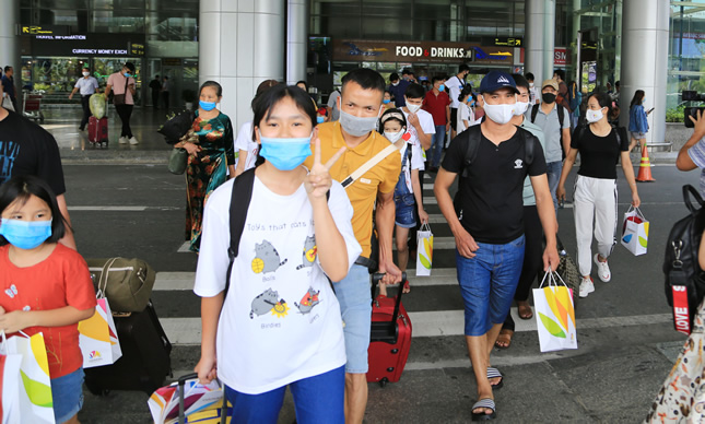 Du khách đến Đà Nẵng bằng đường hàng không trong thời điểm tình hình dịch ổn định.