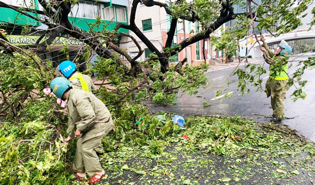 Để nhanh chóng khắc phục hậu quả do bão số 9 gây ra nhằm đảm bảo giao thông, đặc biệt là phục vụ thông suốt và an toàn cho các đoàn lãnh đạo trung ương, lãnh đạo TP và các lực lượng chức năng trên địa bàn TP đi kiểm tra, chỉ đạo, triển khai công tác phòng, chống bão số 9, từ 6 giờ ngày 28-10, là thời điểm bão đổ bộ vào đất liền, các lực lượng trong ngành GTVT TP đã triển khai ra quân thực hiện các nhiệm vụ như: hỗ trợ dọn dẹp, xử lý cây xanh, trụ điện, tủ điện, biển báo... ngã đổ nhằm đảm bảo giao thông trên các tuyến đường; lắp đặt barie, dải phân cách và bố trí người túc trực 24/24 giờ để ngăn cấm các phương tiện đi qua các cầu, tuyến đường bị cấm lưu thông; kiểm tra và không cho các phương tiện xe buýt, các phương tiện vận tải khách hoạt động...