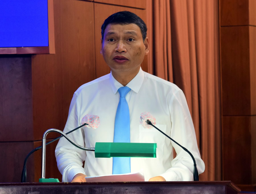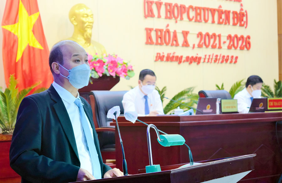 Phó Chủ tịch thường trực UBND thành phố Đà Nẵng Hồ Kỳ Minh báo cáo tại kỳ họp.