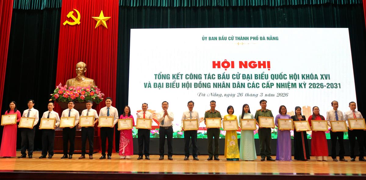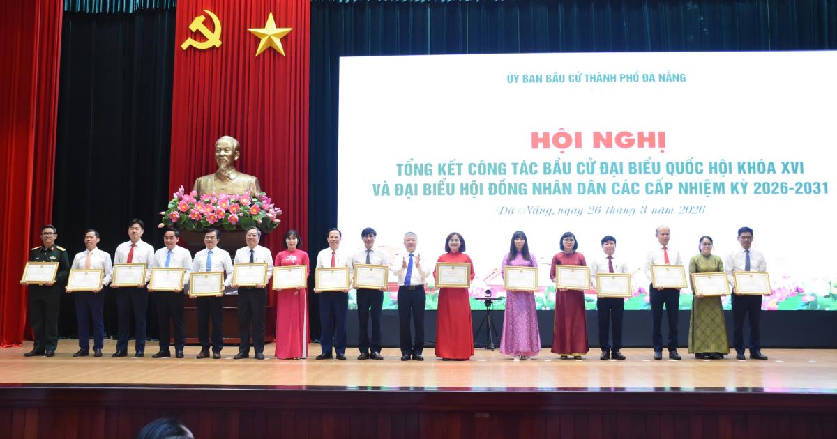 156 tập thể, cá nhân có thành tích xuất sắc trong công tác bầu cử đại biểu Quốc hội khóa XVI và đại biểu HĐND các cấp nhiệm kỳ 2026-2031 nhận bằng khen của Ban Thường vụ Thành ủy và UBND thành phố Đà Nẵng.