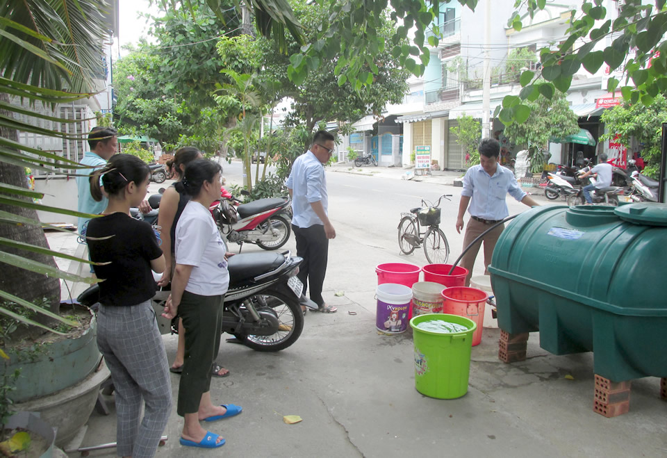 “Trước tình hình đó, Xí nghiệp đã đã tổ chức chở nước “tiếp tế” ở hơn 10 điểm bồn chứa cho những KDC, chung cư Vũng Thùng, Mân Quang nước yếu từ ngày 20-8 mãi đến tận 21 giờ đêm nhưng vẫn không thể đáp ứng hết nhu cầu nước cho bà con”. Theo thông tin từ phía Dawaco, đơn vị đã lắp đặt bồn nước tại 12 vị trí trên địa bàn Q.Sơn Trà và 7 vị trí tại Q.Ngũ Hành Sơn để giúp người dân “giải nhiệt” tạm thời.