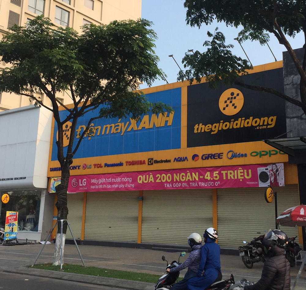 Sau khi chị N.T.T.N bị nhiễm Covid-19, siêu thị Điện máy Xanh nằm trên đường Nguyễn Văn Linh đã đóng cửa. |