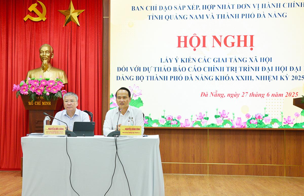 Ngày 27-6, Ban Chỉ đạo sắp xếp, hợp nhất đơn vị hành chính tỉnh Quảng Nam và TP Đà Nẵng tổ chức hội nghị lấy ý kiến các giai tầng xã hội đối với dự thảo báo cáo chính trị trình Đại hội đại biểu Đảng bộ TP Đà Nẵng lần thứ XXIII, nhiệm kỳ 2025-2030.