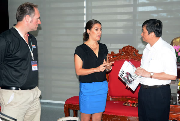| Phó Chủ tịch UBND TP Đà Nẵng Đặng Việt Dũng trao đổi cùng bà Laura Cowlishaw về công tác tổ chức Clipper Race 2016 tại Đà Nẵng. Ảnh: Công Khanh |