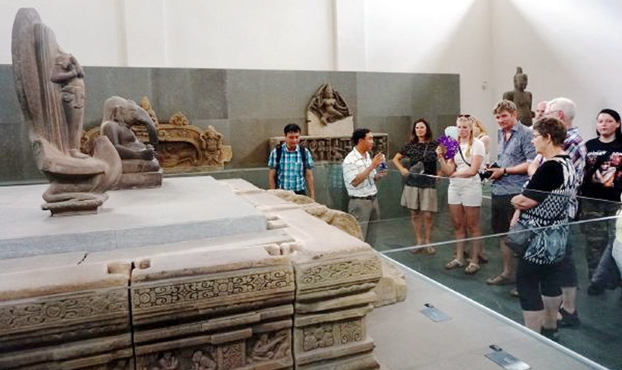 Du khách tham quan Bảo tàng Điêu khắc Chăm Đà Nẵng. |