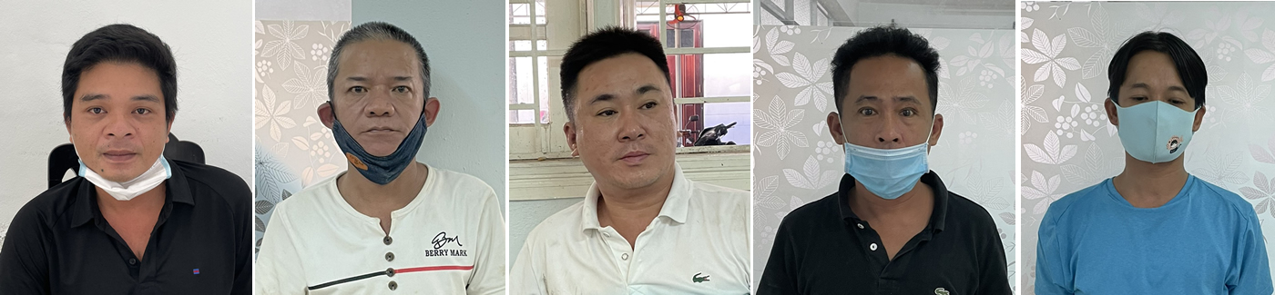 Từ trái qua, đối tượng cầm đầu Nguyễn Anh Tùng và các đối tượng Độ, Hiển, Thanh, Thịnh. |
