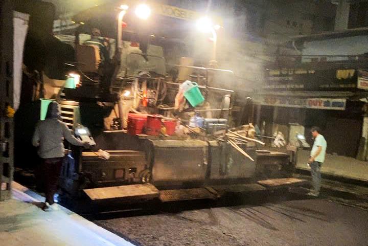 Ghi nhận của chúng tôi trong 3 ngày nghỉ này, mỗi ngày trên công trình Hùng Vương – Lý Thái Tổ đều có hơn 100 cán bộ, kỹ sư và công nhân cùng hàng chục máy móc, thiết bị, phương tiện thi công đồng loạt nhiều hạng mục như: lắp đặt ngầm hệ thống cáp điện lực, cáp điện chiếu sáng, cáp viễn thông, cáp truyền hình, v.v…; bó vỉa hè và vỉa hè; làm nền đường; rải cấp phối đá dăm, thảm nhựa… Lau những giọt mồ hôi lấm tấm trên trán, công nhân Nguyễn Văn Thắng, ở Hà Nội, bộc bạch: “Dịp nghỉ lễ năm nay ngắn ngày, nhà lại ở xa, với thêm không có bà con, bạn bè ở Đà Nẵng nên tôi chọn ở lại công trường làm việc trong dịp này”.
