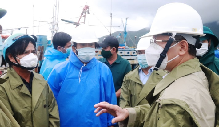 Bí thư Thành ủy Nguyễn Văn Quảng kiểm tra công tác ứng phó bão số 5 tại Âu thuyền Thọ Quang. |