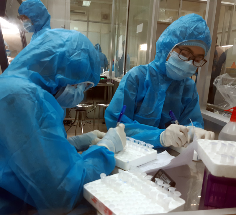 Nhân viên y tế CDC Đà Nẵng cẩn thận ghi chép từng mẫu bệnh phẩm. |