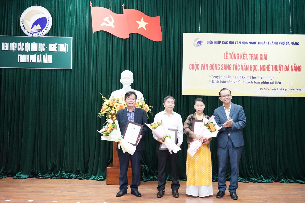 Ngày 21-11, Liên hiệp các Hội Văn học - Nghệ thuật (VH-NT) TP Đà Nẵng tổ chức tổng kết và trao giải Cuộc vận động sáng tác truyện ngắn, bút ký, thơ, âm nhạc, kịch bản sân khấu và kịch bản phim tài liệu năm 2025.