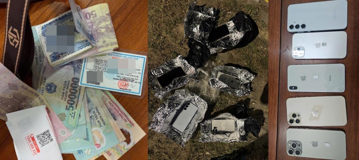 Quá trình giám sát đến khoảng 21 giờ cùng ngày thì phát hiện nhóm đối tượng đi bộ từ dưới bãi biển trên đường Nguyễn Tất Thành thuộc phường Xuân Hà (quận Thanh Khê, Đà Nẵng) có nhiều biểu hiện nghi vấn. Tổ công tác tiến hành kiểm tra hành chính và phát hiện Trần Thị Nguyên (1975, trú xã Hiên Vân, huyện Tiên Du, tỉnh Bắc Ninh)- đối tượng có 2 tiền án về tội: “Trộm cắp tài sản”, đang cầm 1 túi ni-lông bên trong có 5 chiếc ĐTDĐ được bọc trong giấy bạc.