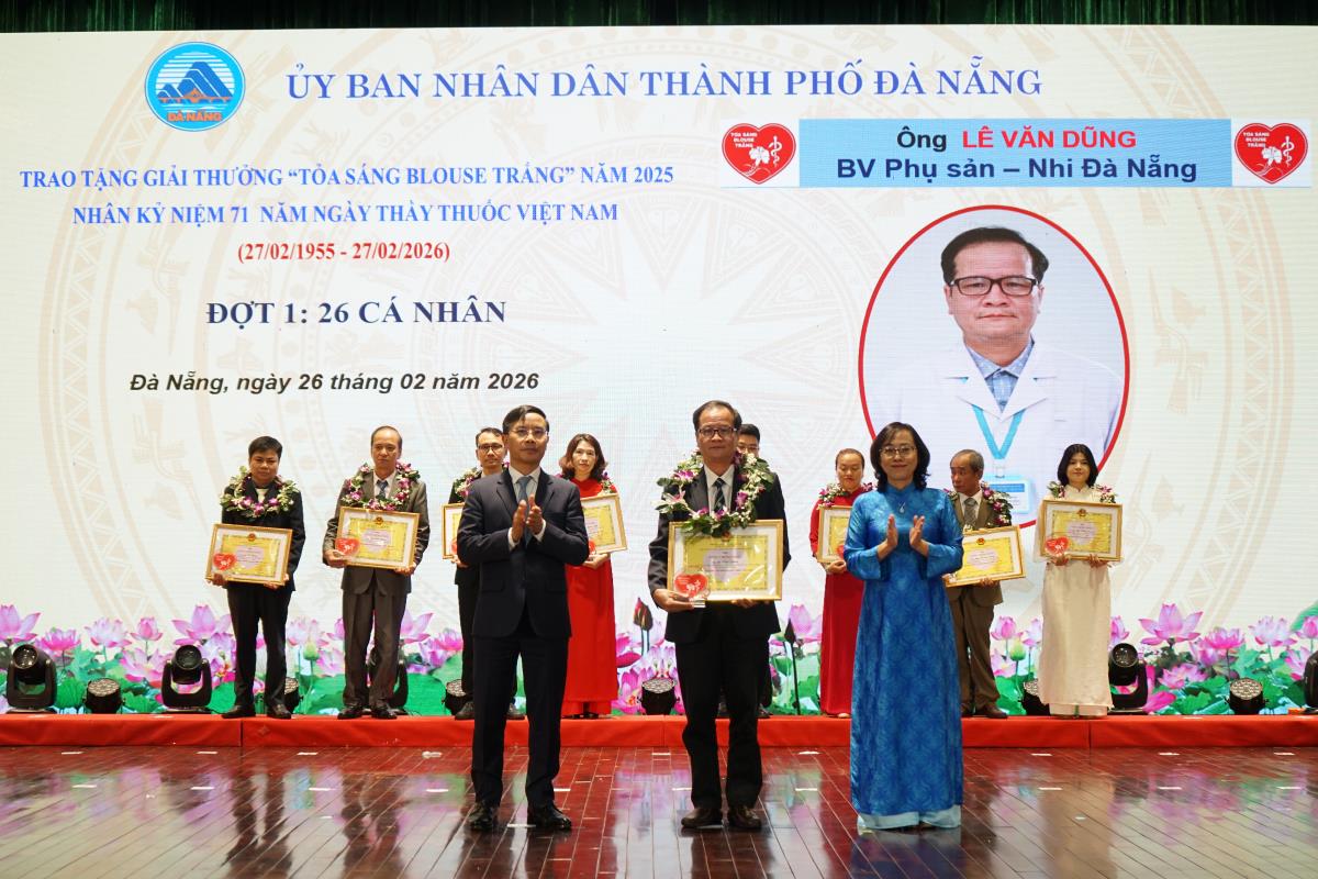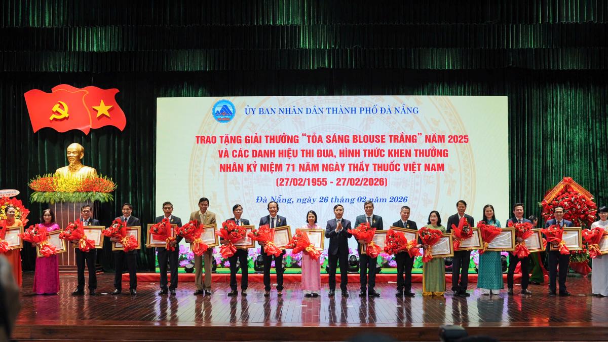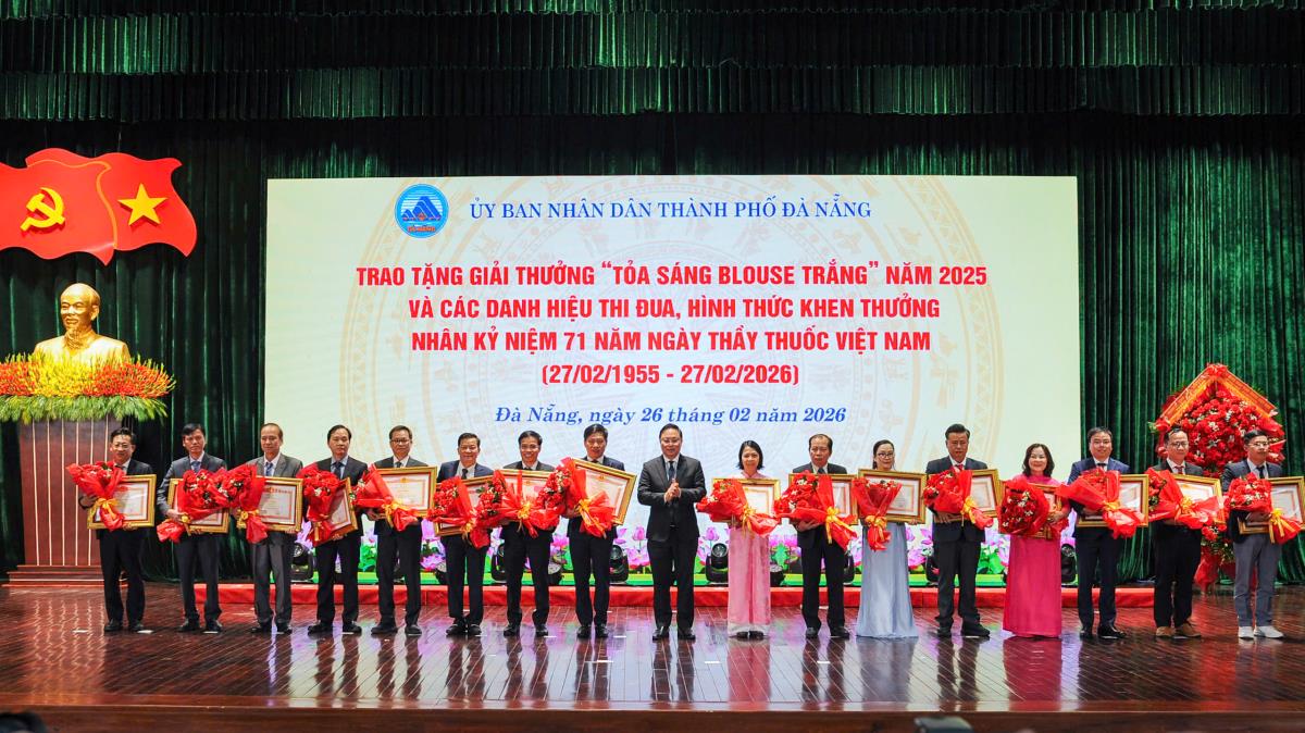 Nhân kỷ niệm 71 năm Ngày Thầy thuốc Việt Nam (27-2-1955 – 27-2-2026), chiều 26-2, UBND TP Đà Nẵng tổ chức lễ trao Giải thưởng “Tỏa sáng Blouse trắng” năm 2025 và các danh hiệu thi đua, hình thức khen thưởng cho các cá nhân tiêu biểu của ngành Y tế thành phố.