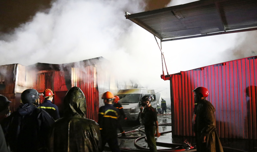 Lửa khói nghi ngút bên trong xưởng khiến công tác chữa cháy gặp nhiều khó khăn. Bọt foam chữa cháy được sử dụng để dập lửa do nệm mút gây ra. Xe bồn của Công ty Công viên cây xanh cũng được huy động để tiếp nước phục vụ chữa cháy.