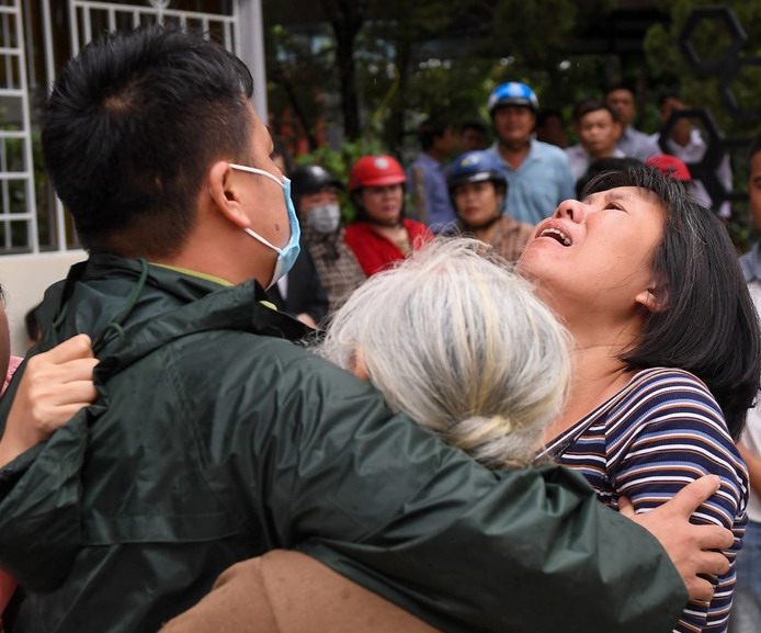 Người thân khóc nghẹn khi quân nhân gặp nạn được đưa thi thể về Đông Hà. |