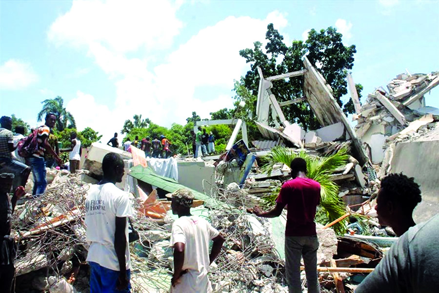 Tìm kiếm người bị nạn sau khi một khách sạn sập do động đất Haiti ngày 14-8.
