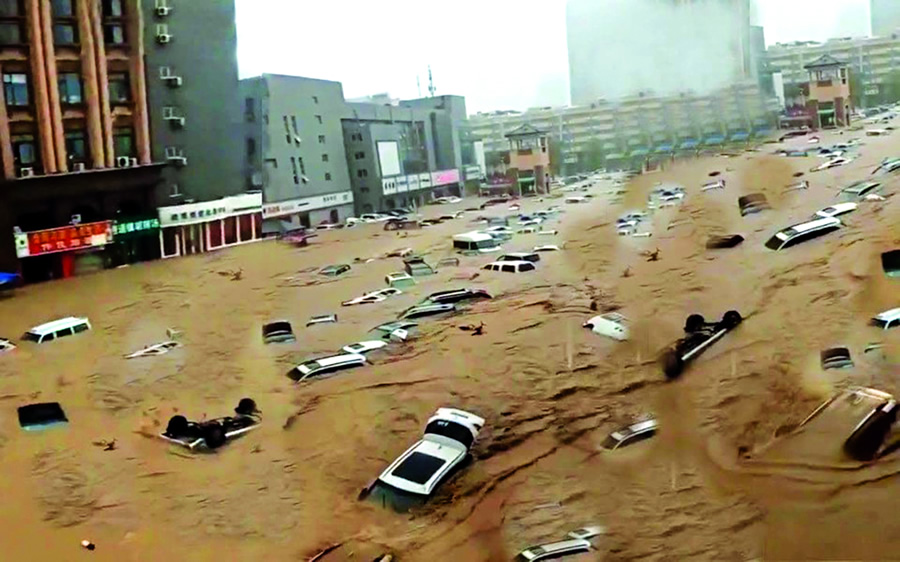 Xe nổi lềnh bềnh trên đường phố Trịnh Châu, Trung Quốc sau trận lũ lụt “nghìn năm có một”.