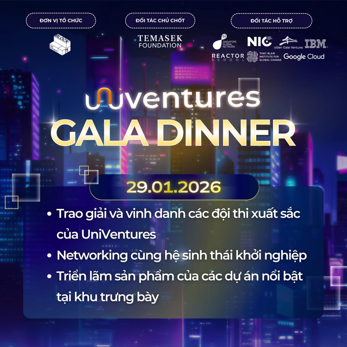 Theo kế hoạch, trong ngày 29-1, Ban Tổ chức sẽ trao giải và vinh danh các đội thi xuất sắc của UniVentures 2026, đồng thời tổ chức các hoạt động networking kết nối hệ sinh thái khởi nghiệp và triển lãm, trưng bày sản phẩm của các dự án nổi bật. Sự kiện được kỳ vọng sẽ tiếp tục lan tỏa tinh thần đổi mới sáng tạo trong cộng đồng sinh viên, giảng viên và các nhà khởi nghiệp trẻ, góp phần thúc đẩy phong trào khởi nghiệp đổi mới sáng tạo trong các trường đại học.