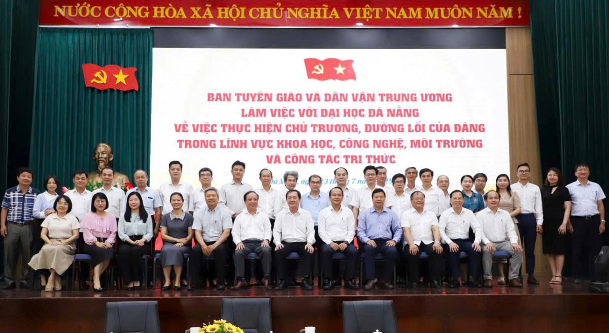 Sáng 23-7, Đoàn công tác của Ban Tuyên giáo và Dân vận Trung ương (TG&DVTƯ) có buổi làm việc với Đại học Đà Nẵng (ĐHĐN) về việc thực hiện các chủ trương, đường lối của Đảng trong lĩnh vực khoa học, công nghệ (KHCN), môi trường và công tác trí thức. Ủy viên Trung ương Đảng, Phó Trưởng ban TG&DVTƯ Huỳnh Thành Đạt; Phó Bí thư Thường trực Thành ủy Đà Nẵng Nguyễn Đình Vĩnh và Giám đốc ĐHĐN PGS.TS. Nguyễn Ngọc Vũ đồng chủ trì buổi làm việc.