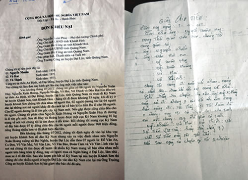 | Đơn khiếu nại, tố cáo hành vi ăn chặn tiền của băng giang hồ của các phu trầm H. Đại Lộc. |