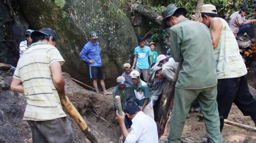 | Hàng trăm phu trầm vào rừng Gộp Ngà, H. Khánh Sơn, Khánh Hòa đào tìm kỳ nam. |