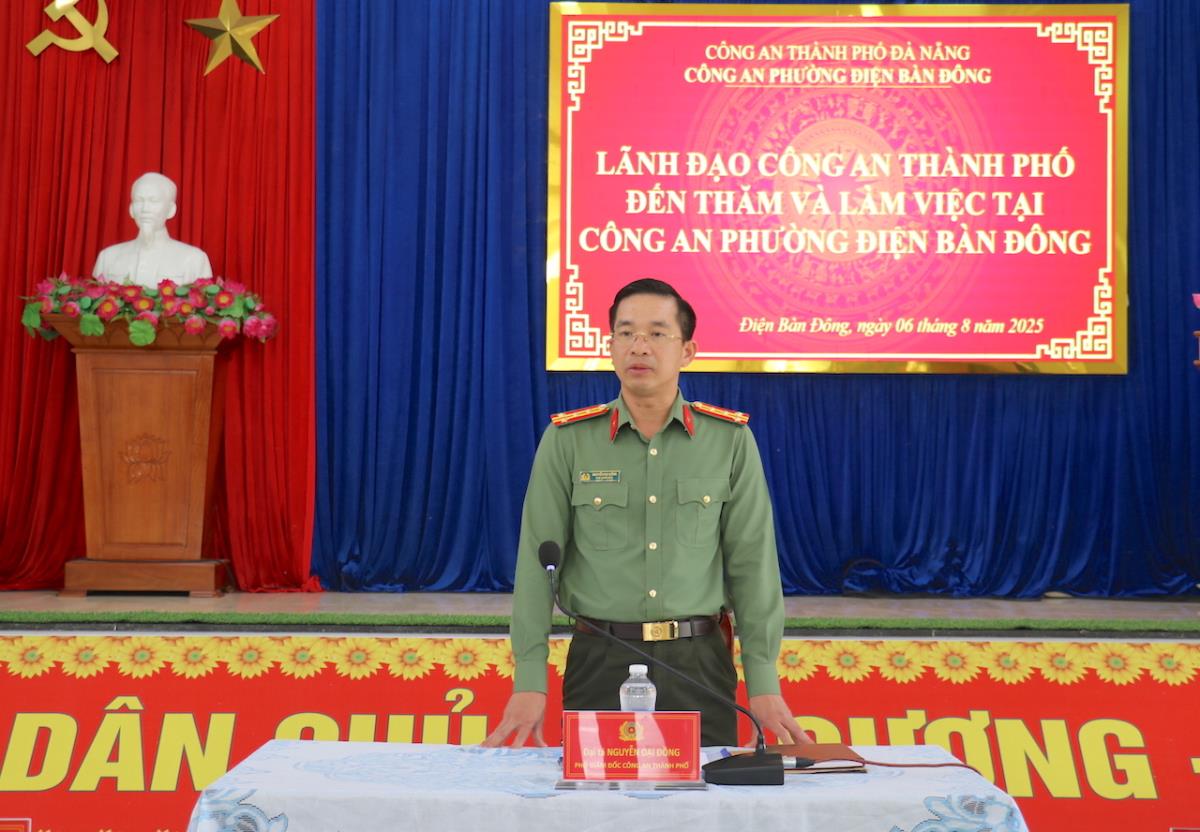 Phát biểu tại buổi làm việc, Đại tá Nguyễn Đại Đồng ghi nhận, biểu dương những kết quả bước đầu mà Công an phường Điện Bàn Đông đã đạt được trong giai đoạn đầu tổ chức lại bộ máy sau sáp nhập. Thời gian đến, đồng chí Phó Giám đốc yêu cầu đơn vị tiếp tục phát huy tinh thần trách nhiệm, giữ vững sự ổn định về tổ chức, đoàn kết nội bộ và tạo môi trường làm việc tích cực, động viên CBCS yên tâm công tác, cống hiến lâu dài; tiếp tục nâng cao tinh thần gương mẫu, trách nhiệm, đoàn kết thông nhất, tập trung lãnh đạo chỉ đạo thực hiện ngay và hiệu quả các nhiệm vụ được giao; đảm bảo bộ máy tổ chức mới đi vào hoạt động thông suốt, hiệu quả, không bị gián đoạn.