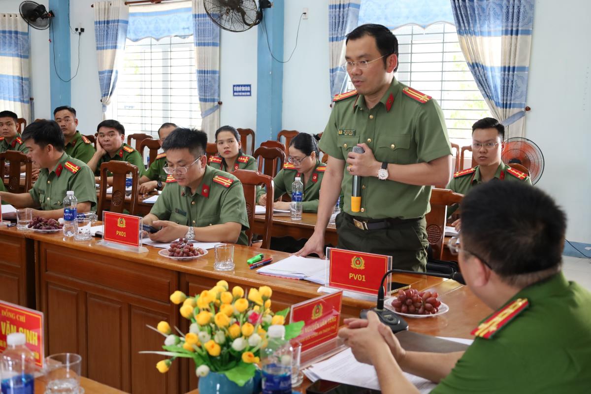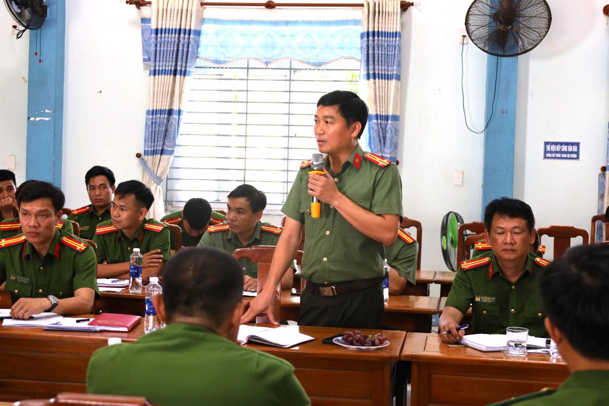 “Cán bộ chiến sĩ phải đổi mới tư duy, cách làm, chủ động trong công việc, gần dân, sát dân; hướng dẫn các thủ tục cho người dân khi đến làm việc được đảm bảo, phục vụ tốt nhất cho nhân dân. Làm tốt công tác tham mưu cho Đảng ủy, Ủy ban các vấn đề thuộc thẩm quyền; bám sát cơ sở, chủ động nắm rõ tình hình an ninh chính trị, trật tự an toàn xã hội; quản lý chặt địa bàn, đối tượng, đặc biệt các đối tượng có tiền án, tiền sự, các nhóm thanh thiếu niên bỏ học, không nghề nghiệp, tụ tập quậy phá; quản lý chặt các đối tượng, tội phạm liên quan đến ma túy, các đối tượng liên quan đến vũ khí, vật liệu nổ; rà soát, cập nhật các nút giao thông, “điểm đen” trên địa bàn thường xuyên xảy ra tai nạn để chủ động có giải pháp phòng ngừa. Đồng thời chủ động nắm tình hình nhạy cảm trên địa bàn, thường xuyên báo cáo lãnh đạo cấp trên để chỉ đạo, theo dõi, tránh để xảy ra điểm nóng”- Đại tá Nguyễn Văn Tăng đề nghị.