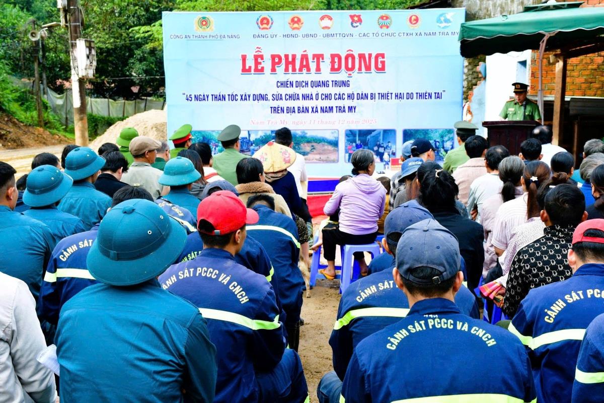 Ngày 11-12, tại xã Nam Trà My, Công an TP Đà Nẵng phối hợp với chính quyền địa phương tổ chức Lễ phát động “Chiến dịch Quang Trung – 45 ngày thần tốc xây dựng, sửa chữa nhà ở cho các hộ dân bị thiệt hại do thiên tai”. Tham dự buổi lễ có Đại tá Nguyễn Xuân Hoàng, Phó Giám đốc Công an TP Đà Nẵng.