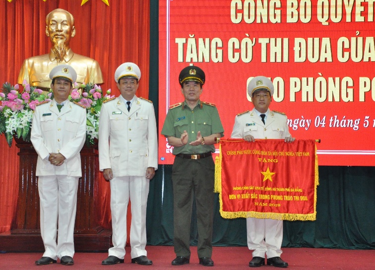 Nhân dịp này, Giám đốc CATP cũng tổ chức trao Cờ Thi đua của Thủ tướng Chính phủ cho Phòng Cảnh sát Kinh tế (CATP) vì đã có thành tích xuất sắc dẫn đầu phong trào thi đua “Vì An ninh Tổ quốc” năm 2019, góp phần bảo đảm ANQG, giữ gìn TTATXH.