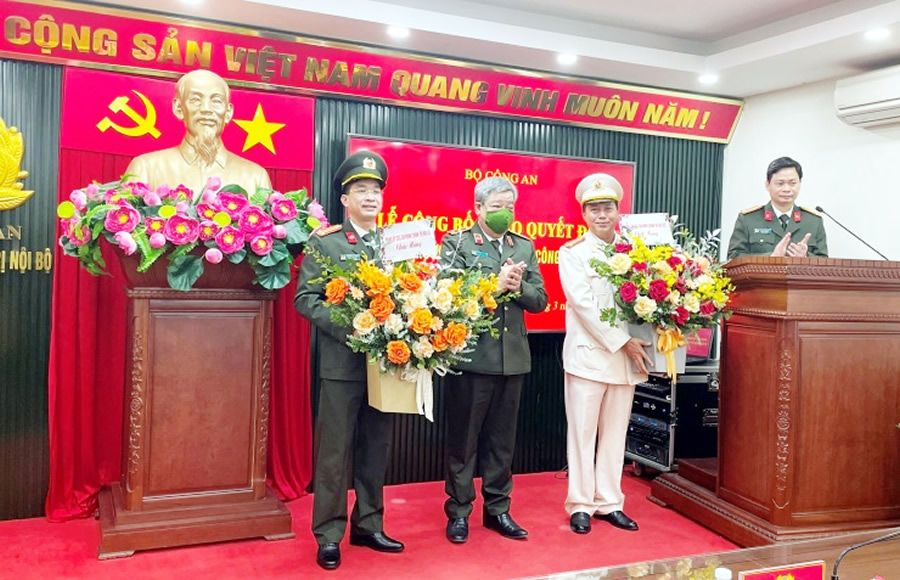 Lãnh đạo Bộ Công an trao quyết định cho Đại tá Trần Đình Chung.